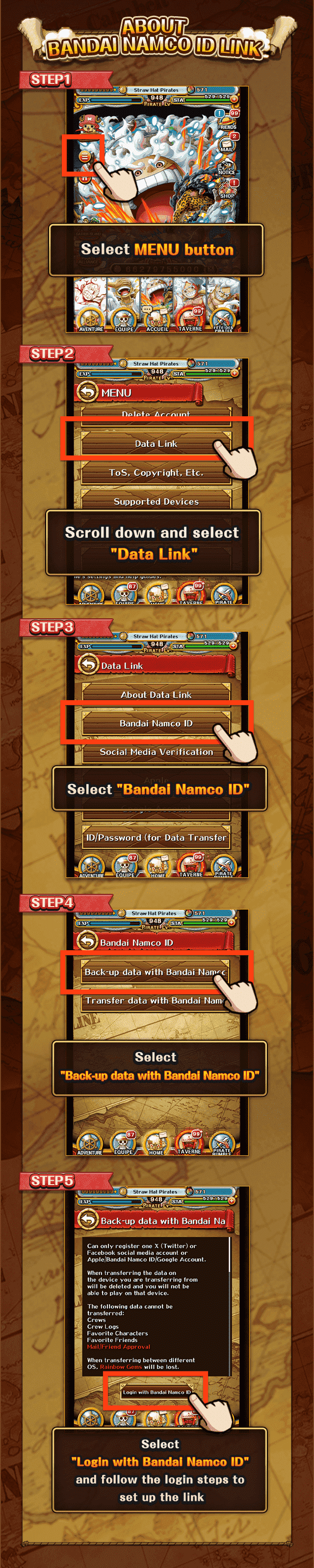 Step 1: Link your game account to your Bandai Namco ID.
