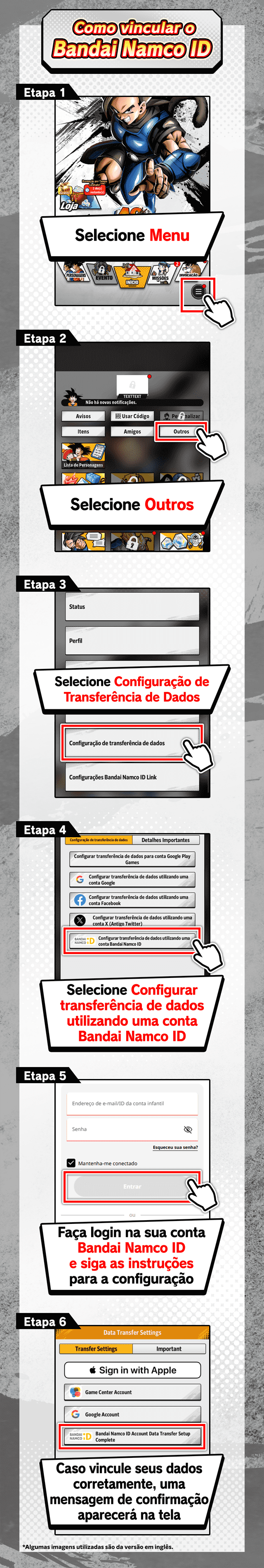 Para usar este serviço, instale o aplicativo do jogo e cadastre uma Bandai Namco ID (grátis).