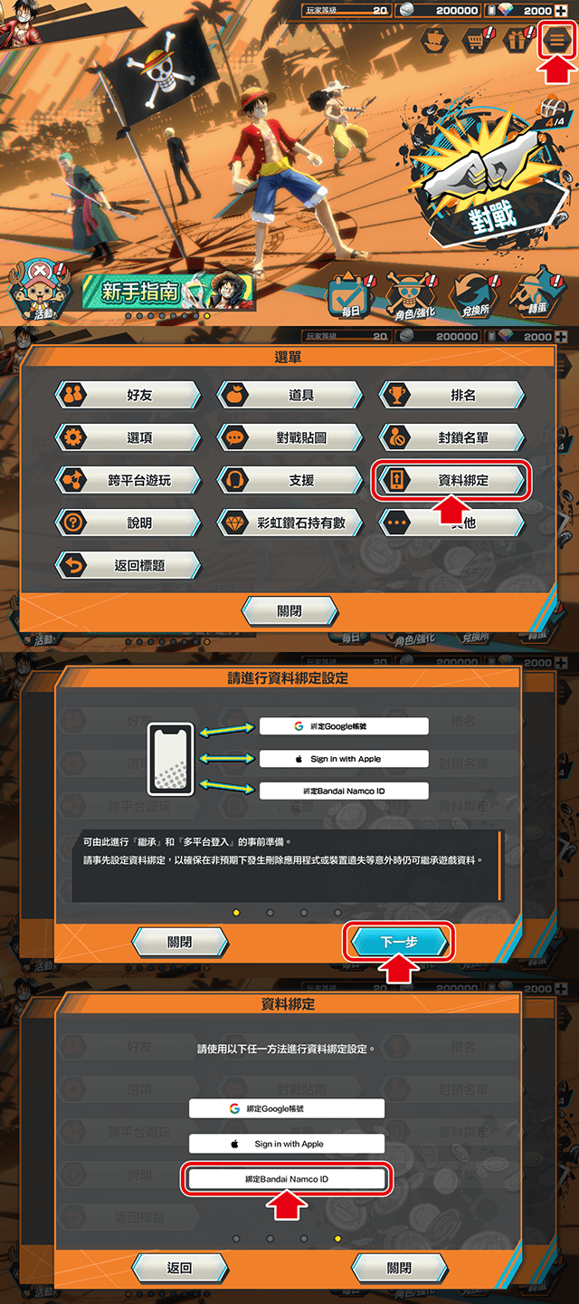 若您尚未擁有Bandai Namco ID,請使用社群帳號(LINE、Facebook、X(前Twitter))或電子郵件信箱等方式登錄Bandai Namco ID。